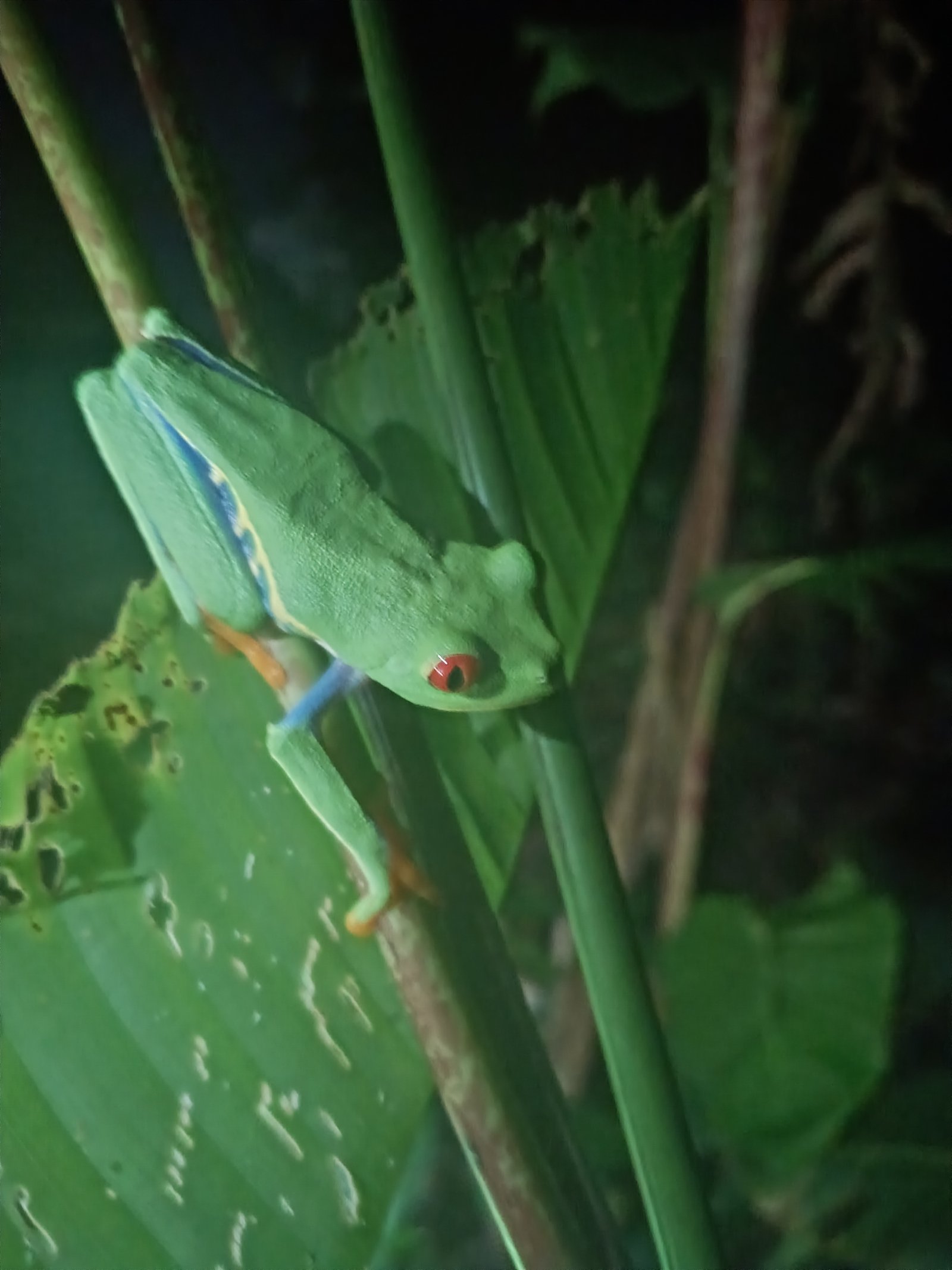 Tortuguero Night Tour starts at the pickup Point then proceed to the Activity location not to far from the Tortuguero village. For about to hrs we will be searching and scanning the forest for possible animals along the way, first on the Main taril then the inside te forest.