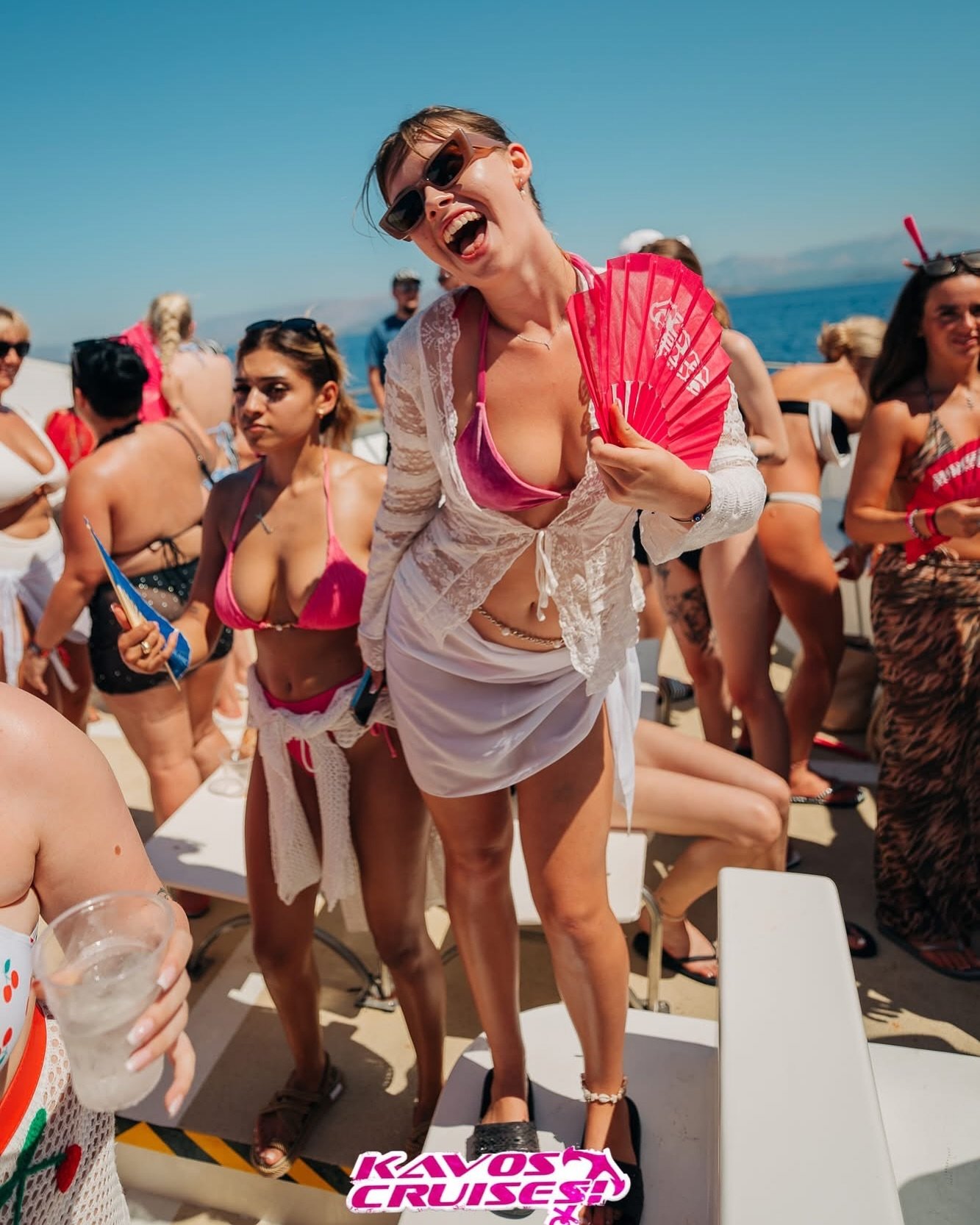 Meet at the designated beach meeting point and board the party boat. After a short welcome and safety briefing, the cruise departs and the music starts on board.