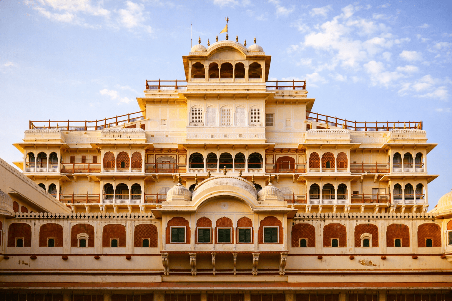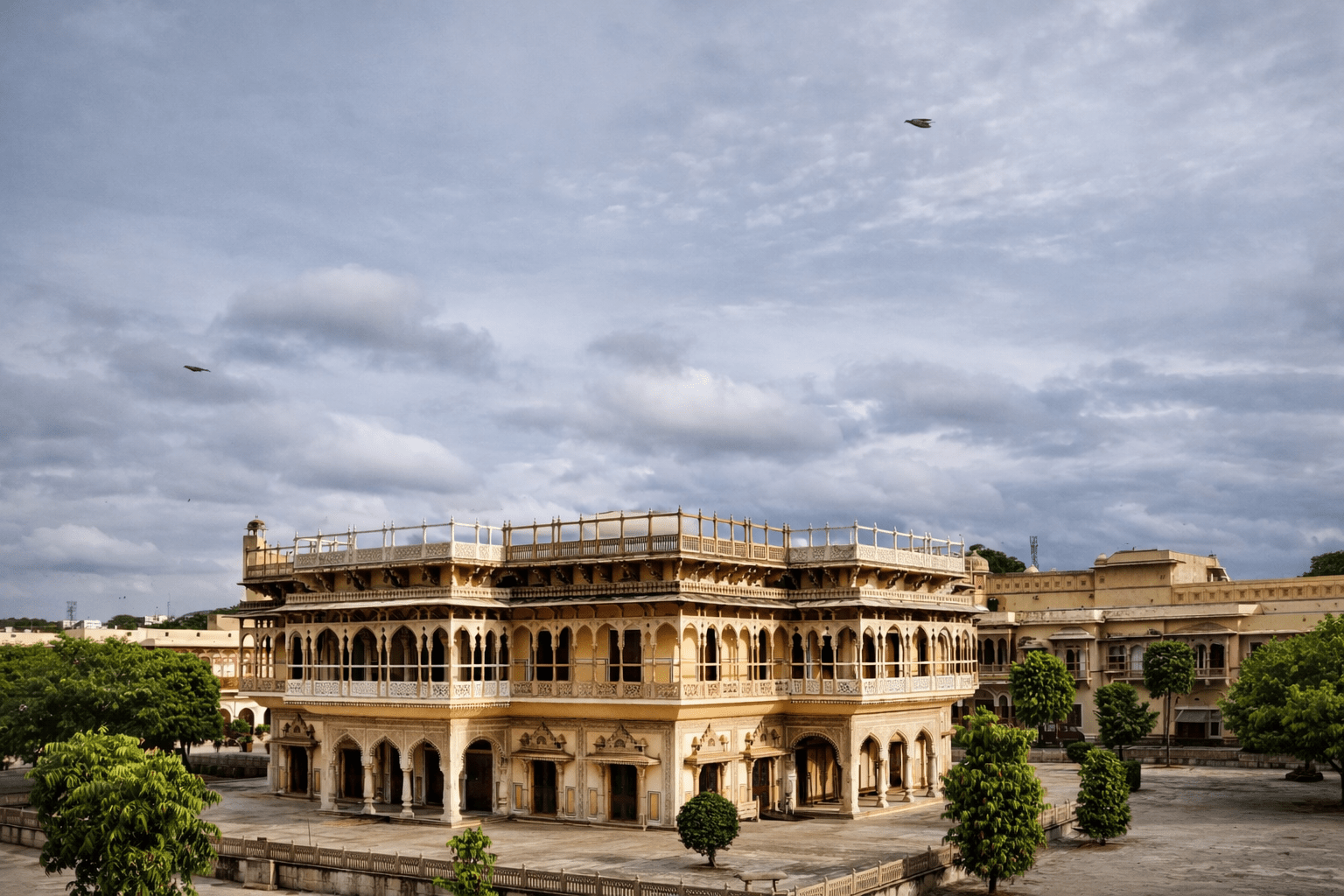 Proceed to the City Palace, located in the heart of Jaipur. This impressive complex is still home to the royal family.