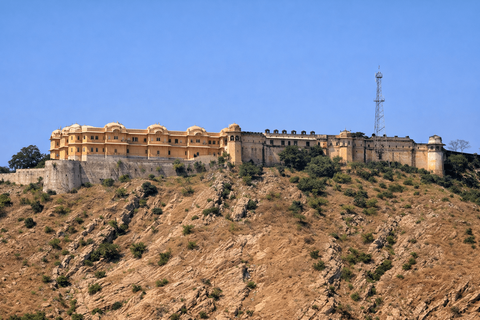 Enjoy a traditional elephant ride up to the fort entrance, offering a royal experience and scenic views of the surrounding hills and Maota Lake.