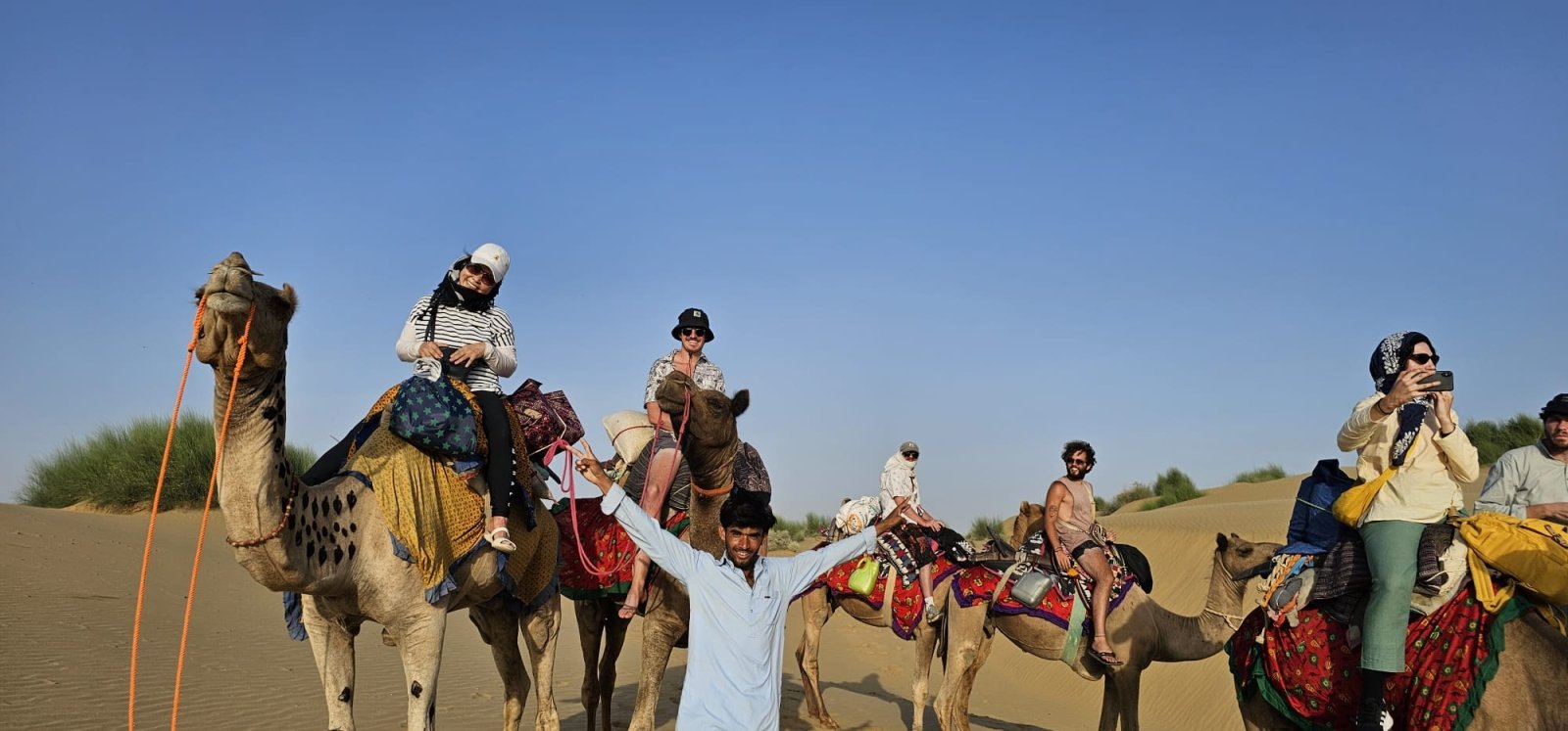 Step off the beaten track and into the vast wilderness of Rajasthan’s Thar Desert on this camel safari. Accompanied by experienced local Camel Driver, you'll explore this remarkable landscape by camel. The journey begins with a scenic drive from Jaisalmer into the heart of the desert, passing abandoned villages, ancient ruins and a peaceful oasis. After meeting your camel and Driver, you'll ride through the dunes, watching the sun set in spectacular color. Enjoy Masala Chai with Snacks at middle of desert with incredible beauty of Thar desert. In the evening, gather around a fire (Campfire only in winter time) to enjoy a freshly cooked vegetarian dinner under a sky filled with stars. At night, sleep in traditional desert style bedding — either on the dunes or under a simple open shelter — and wake to the calm beauty of a desert sunrise. A light breakfast and another camel ride complete the experience before returning to Jaisalmer.