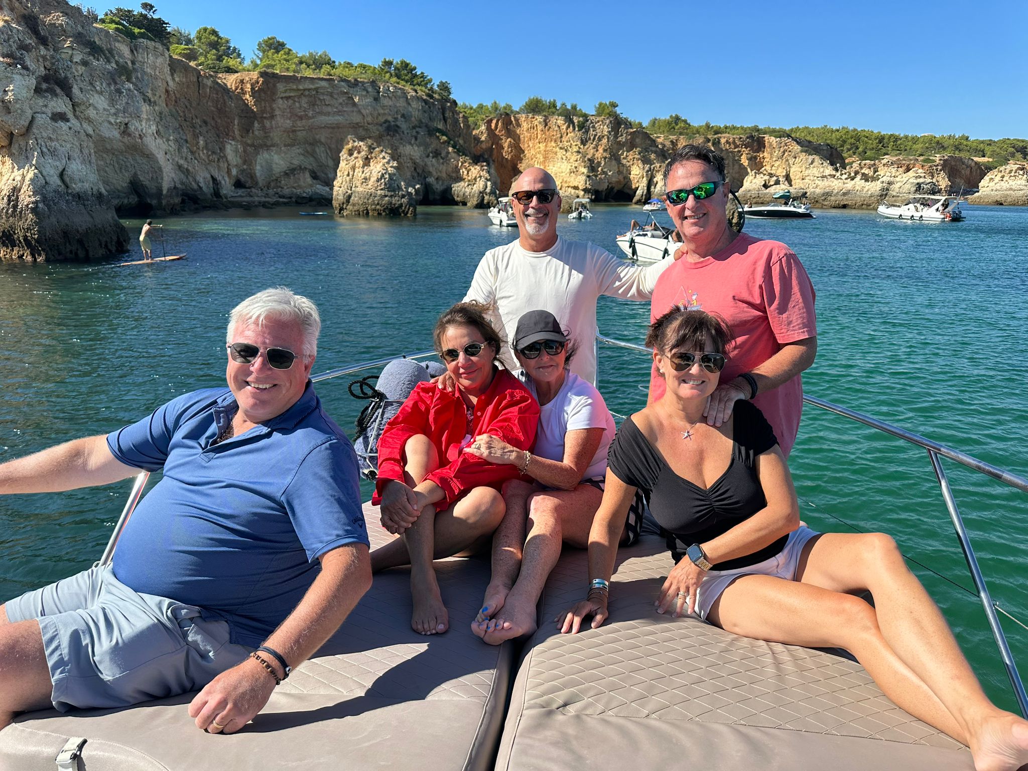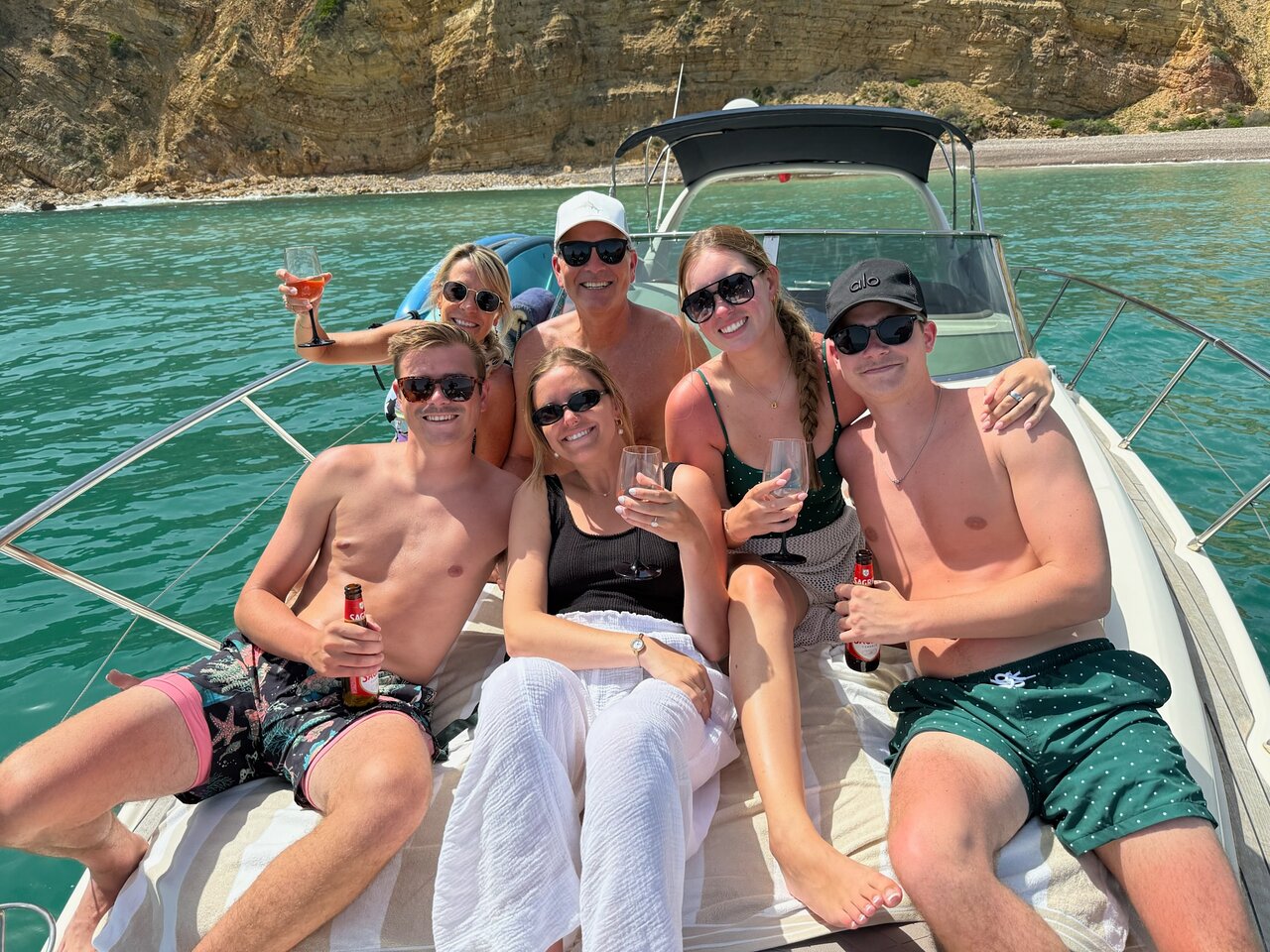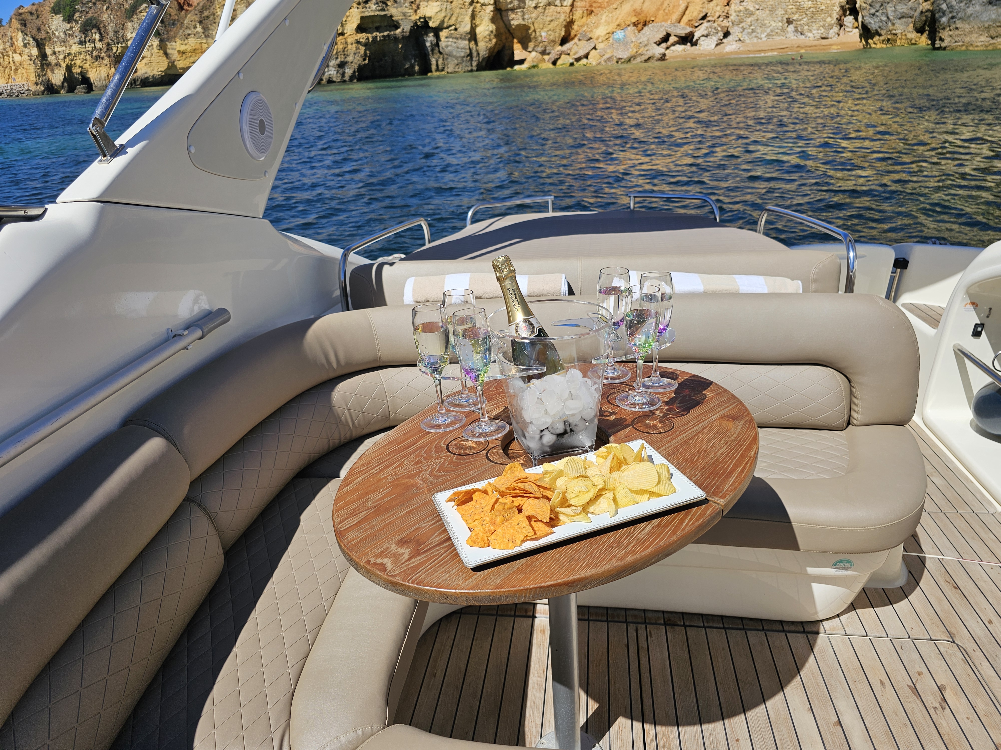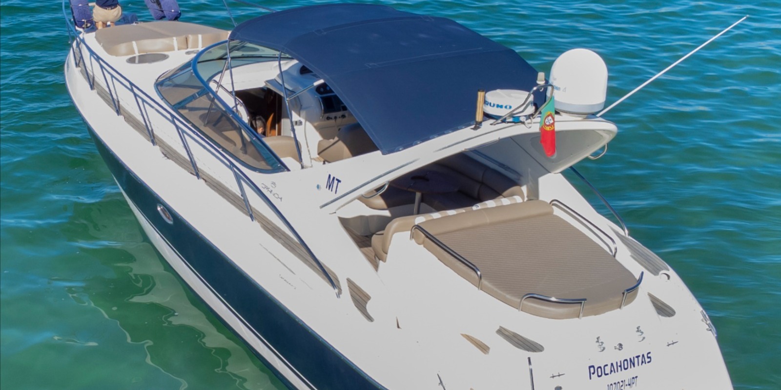 Step aboard Pocahontas, our stunning Cranchi Endurance motor yacht, designed for the ultimate fun-filled day on the water. With a sleek, powerful design and twin Volvo Penta engines, this luxurious motor cruiser glides effortlessly at 28 knots, taking you along the breathtaking Algarve coastline in style and comfort.