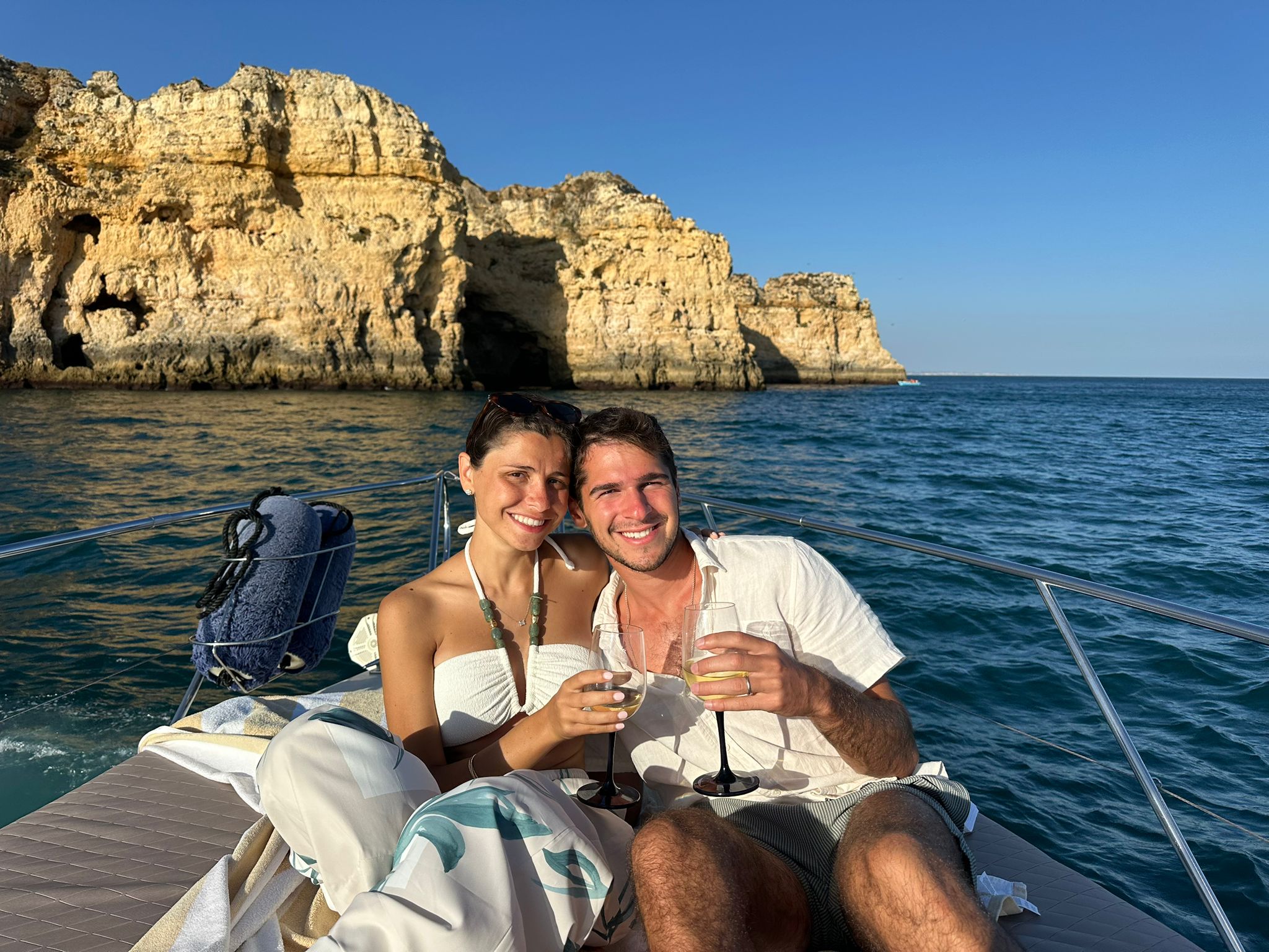 For lunch, the choice is yours. We can stop at the charming fishing village of Ferragudo, where you can enjoy a delicious meal overlooking the harbour, or we can arrange tailored onboard catering prepared to your preferences. We’ll send menu options in advance so everything is just how you like it or you’re very welcome to bring your own food on board. (Please note that restaurant meals and catering are not included in the charter price)
