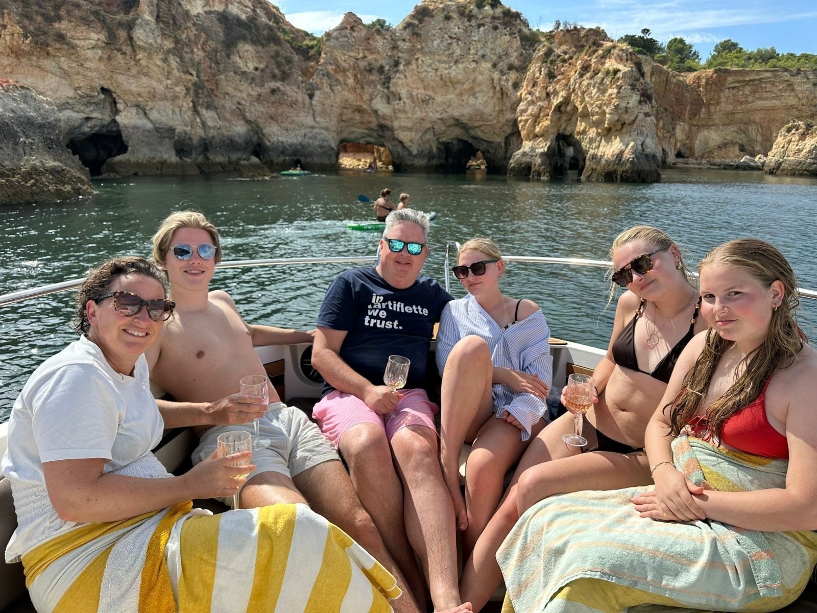 Your local skipper is an expert navigator as well as your fun-loving guide to the best hidden spots along the coast! Cruise past towering cliffs, stunning caves, and soak in the dazzling turquoise waters of Ponte da Piedade. Then, drop anchor at a beautiful bay or lagoon, where you can swim, paddleboard, snorkel, or simply kick back and enjoy your favourite tunes with a drink in hand.