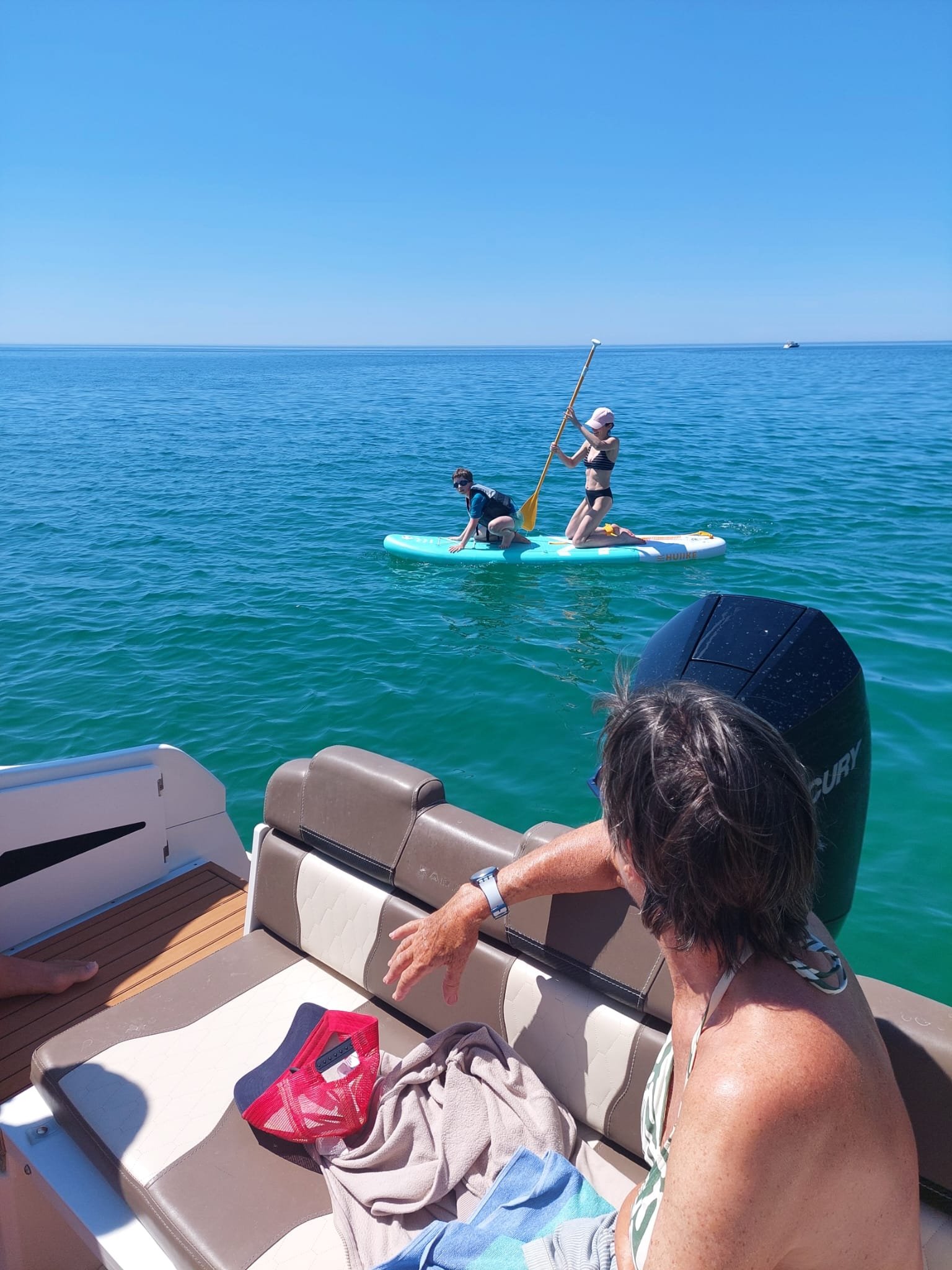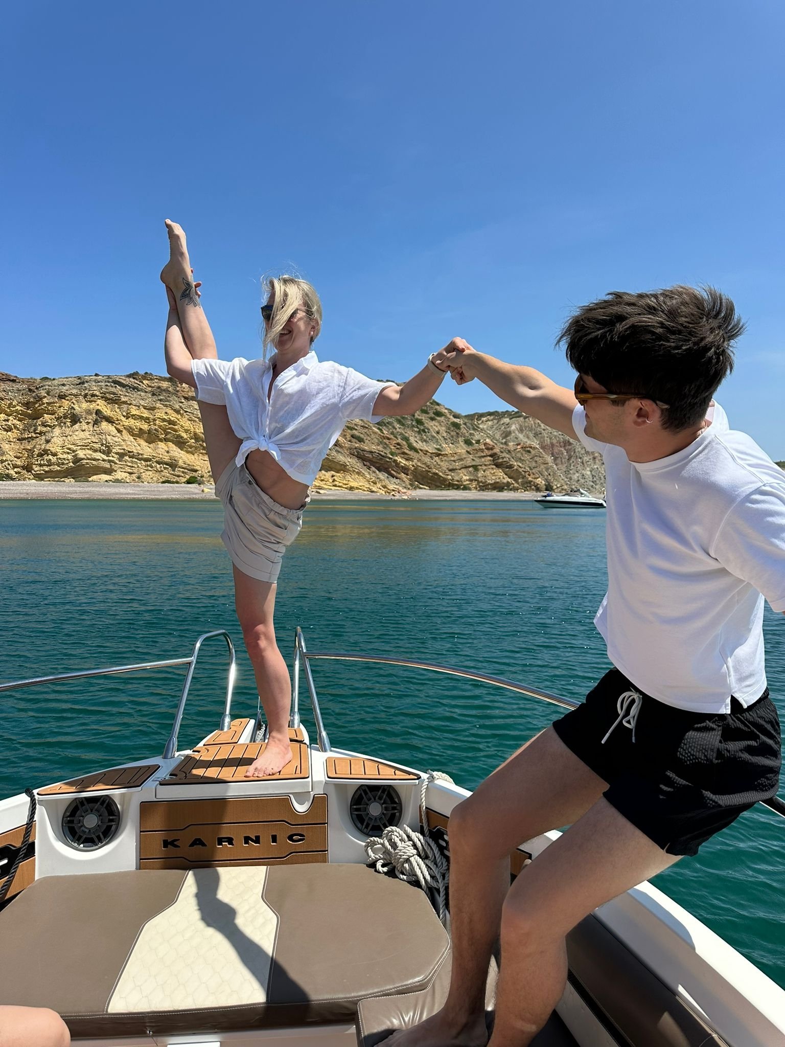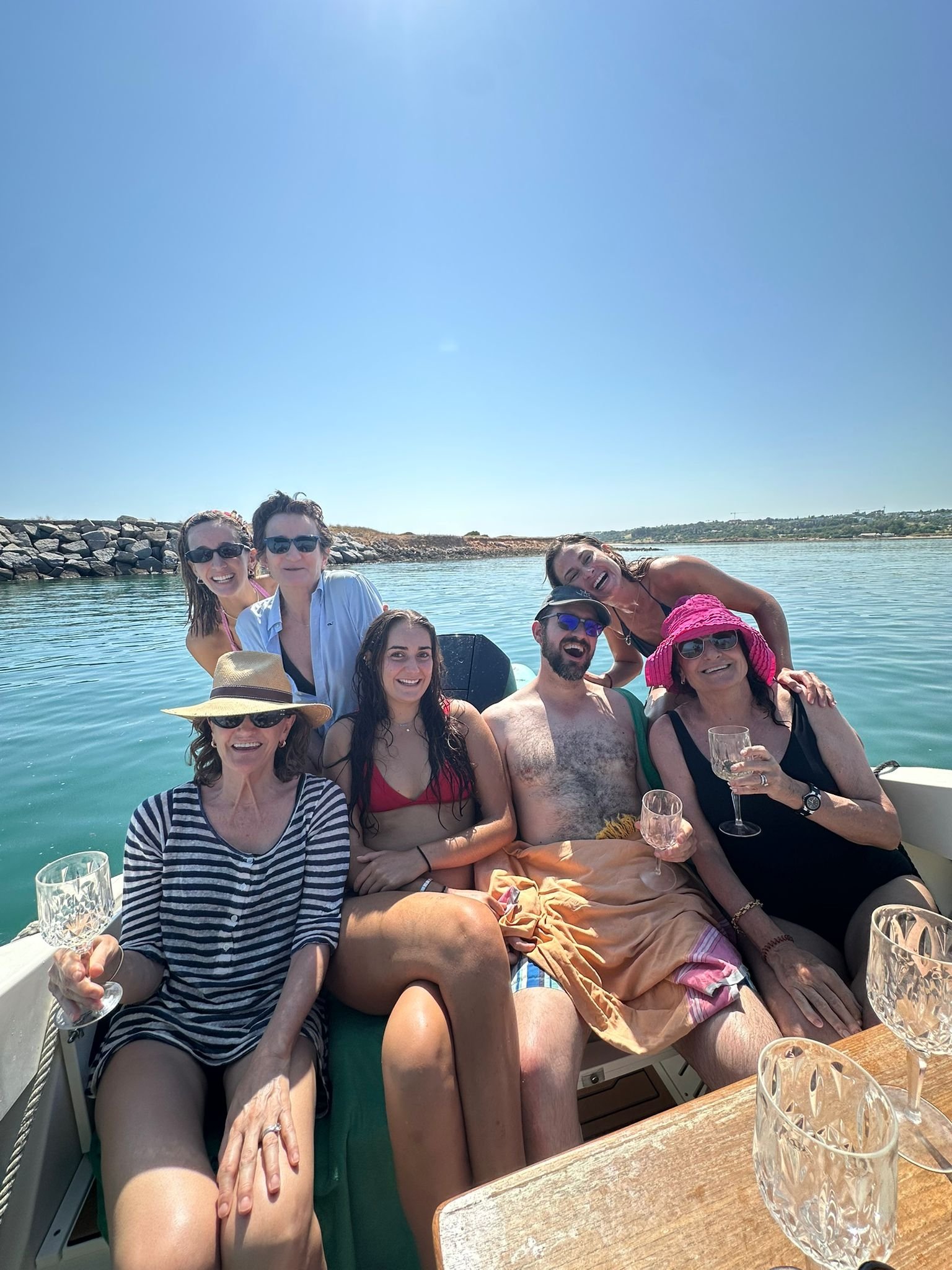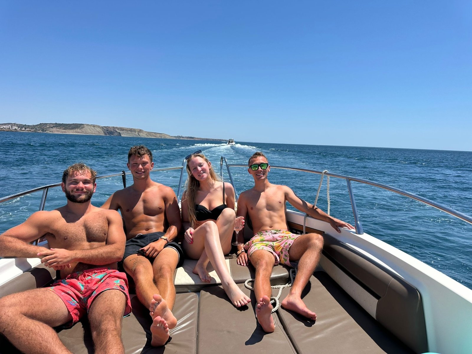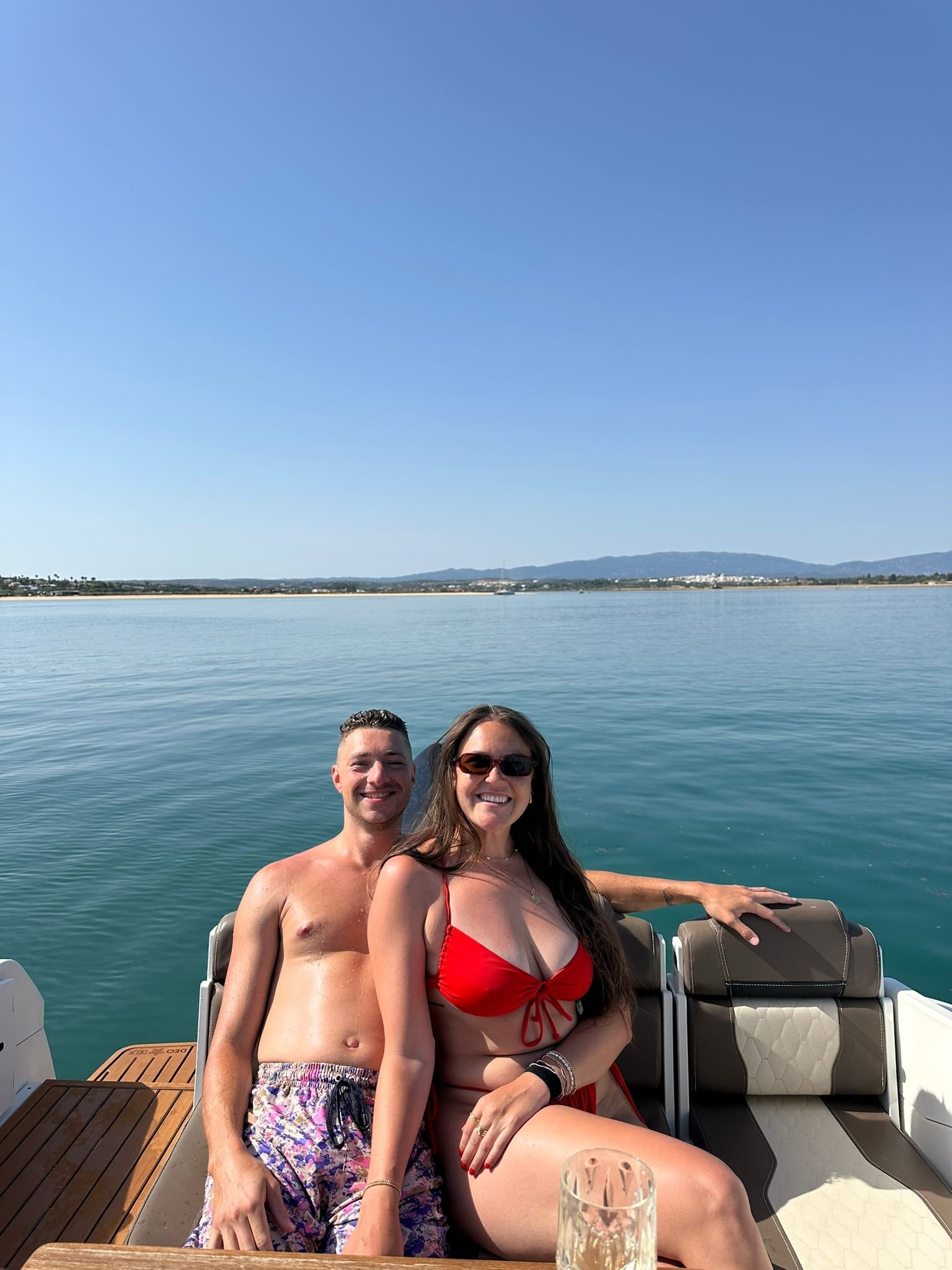 Fresh for the 2026 season, she’s just had a brand-new upholstery refit, giving the boat a stunning, luxurious look that feels as amazing as it looks. With a convertible bow that transforms from a comfy lounge to a sun-soaked haven, a shaded seating area, an easy-access swim platform, and onboard bathroom facilities, this boat has everything you need for the ultimate Algarve experience.