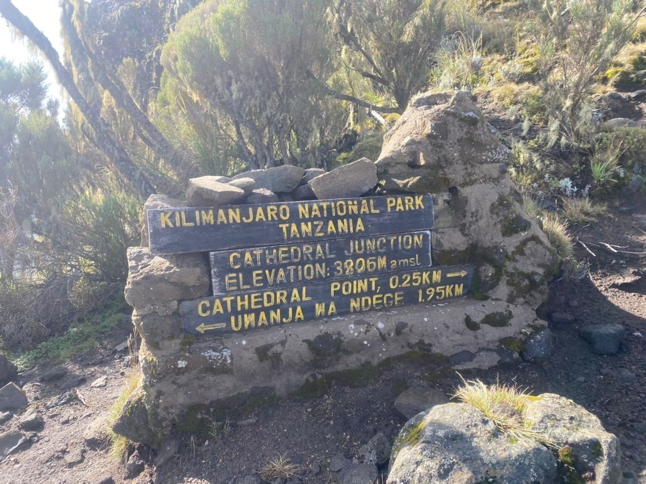 😊 Shira 1 to Moir Hut (3,850m) or possibly referring to Lava Tower (3,720m) or Cathedral Point isn't straightforward. Assuming you mean Shira 1 to Lava Tower (Cathedral Point):