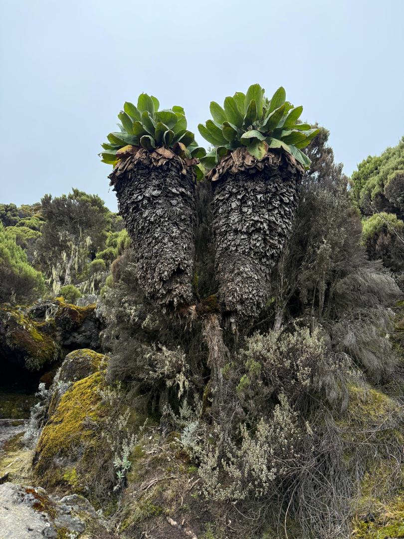 The journey begins at Marangu Gate in the lush rainforest on the southeastern side of the mountain. Trekkers hike through dense forest filled with giant ferns, colobus monkeys, and unique bird species before reaching Mandara Hut for the first overnight stay. The next day the trail climbs above the forest into the moorland zone, where the landscape opens up with spectacular views and unusual plants like giant lobelias as you head toward Horombo Hut.