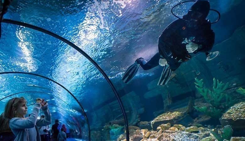 Upon arrival, you’ll be immersed in a spectacular underwater world, where the sheer size of the complex and the diversity of marine life will leave you in awe. Walk through a variety of thematic aquariums, each carefully designed to represent different marine ecosystems from around the globe, from tropical seas to mysterious deep-ocean environments.