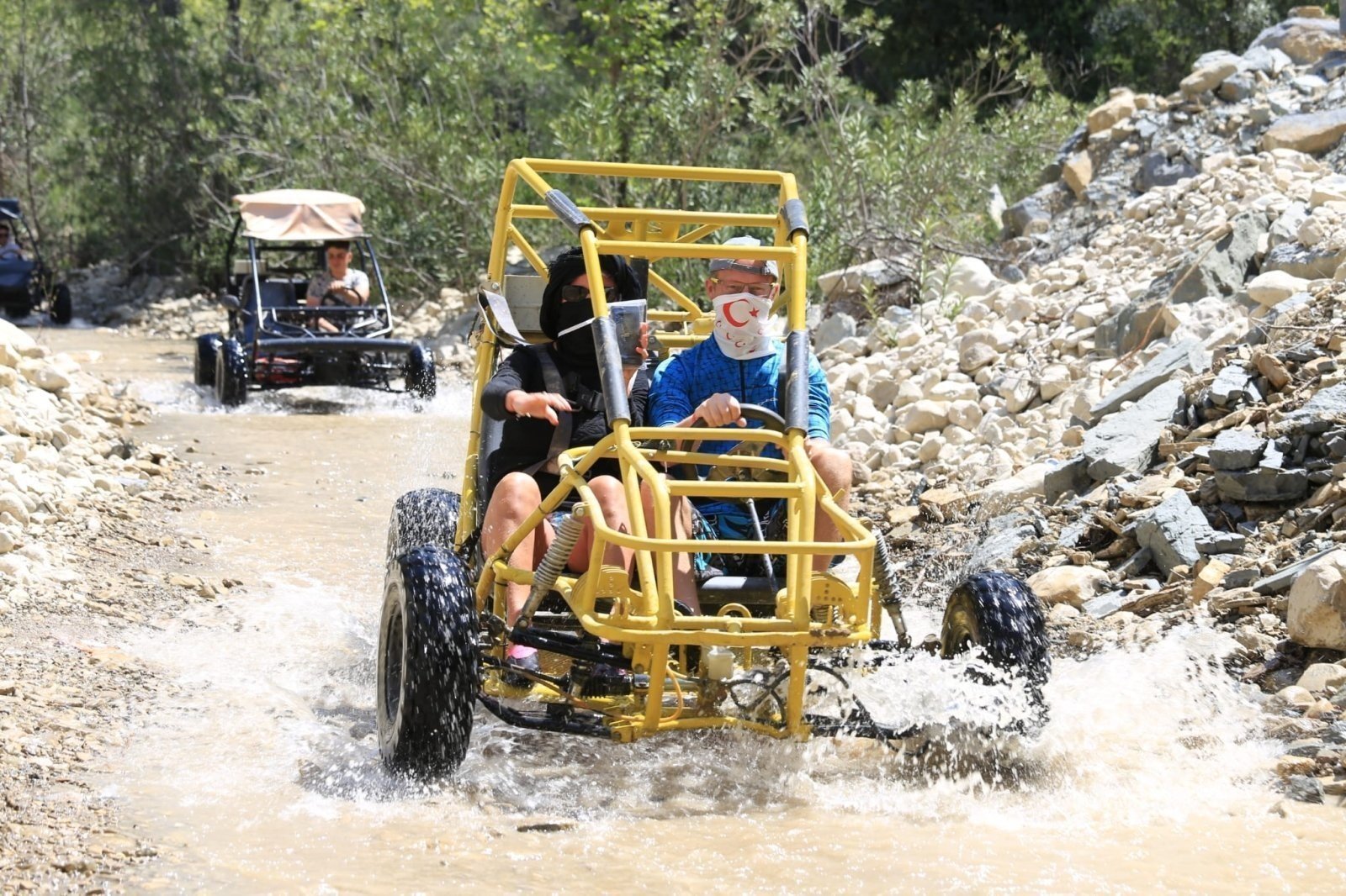 After being picked up from your hotel, enjoy a scenic one-hour drive to Beşkonak/Köprülü Canyon. Upon arrival, our guide will provide a briefing on the buggy safari, preparing you for an exciting ride through rugged terrain and breathtaking landscapes.