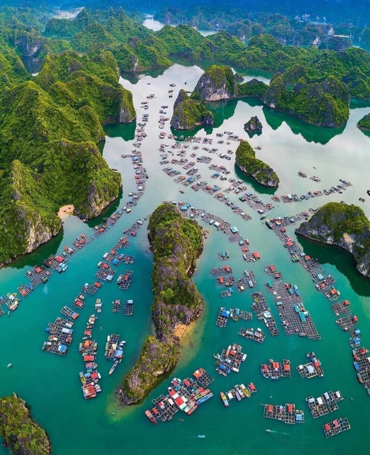 9:00: Board the boat to Lan Ha bay. At first the boat will sail around Lan Ha Bay. The bayitself is spectacular, with towers of limestone rocks rising from the sea, passing by Cai BeoFishing Village which is the most traditional fishing village in the north of Vietnam. It is alsoone of the biggest floating villages in Cat Ba and continues sailing to thousands of karsttowers with many unique shapes (chopsticks and seals).
