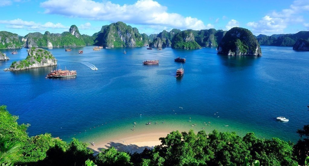 12:30: The boat drops anchor at the border of Lan Ha Bay and Ha Long bay for lunch.The lunch is freshly cooked and served in Vietnamese style by the local crews on board(vegetarian dishes for a choice). Enjoy lunch while cruising through magnificent Halong Bay,admiring the fascinating rock formations in the bay.