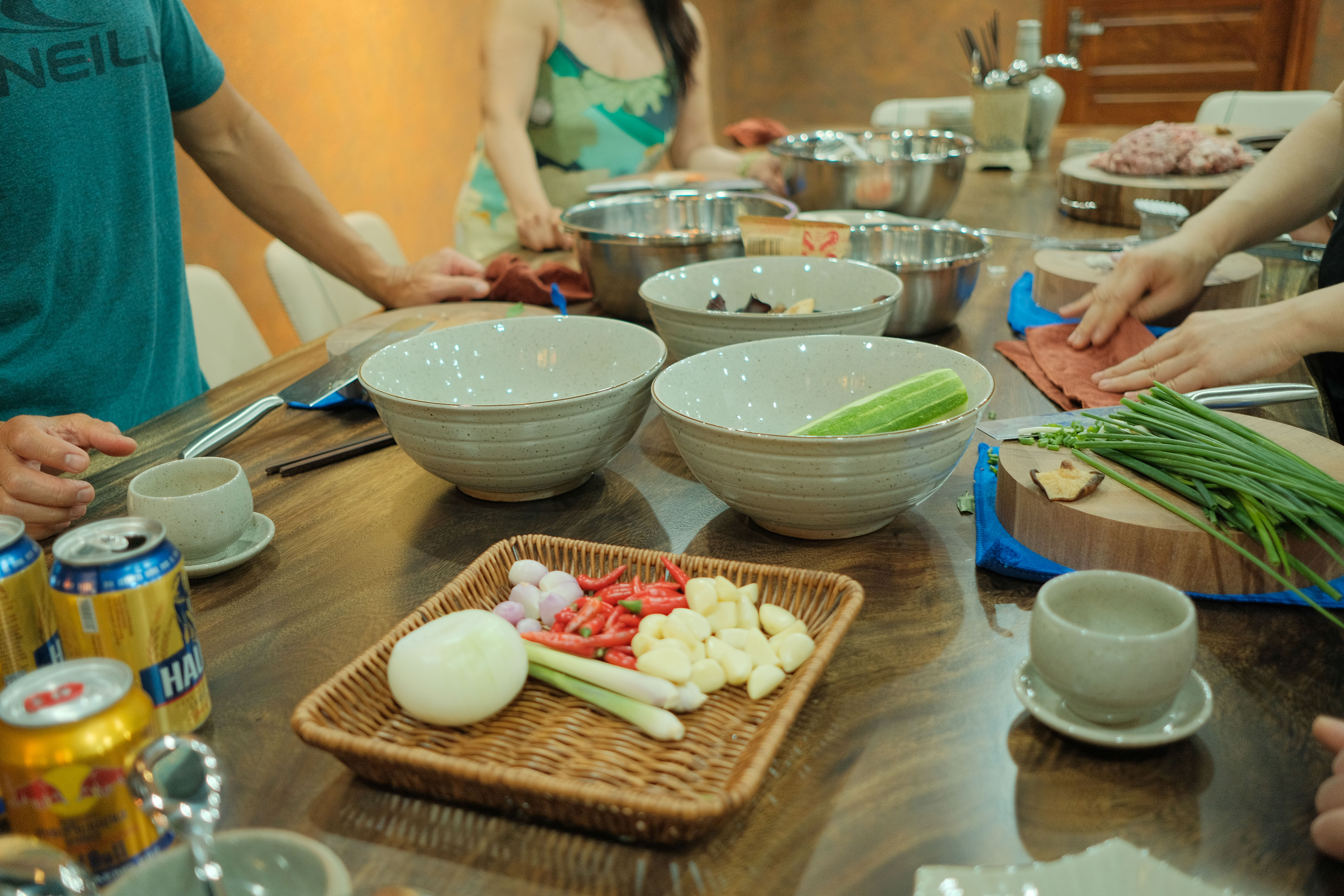 Join us in the bustling streets of Hanoi, where the fragrant aromas of lemongrass, ginger, and freshly chopped herbs fill the air. Under the expert guidance of our seasoned chef, you'll delve deep into the secrets of preparing traditional Vietnamese delicacies, from savoury pho to aromatic bun cha and crispy spring rolls.