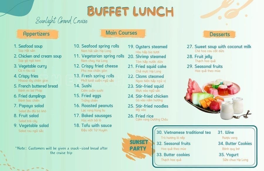 Savor an authentic Vietnamese buffet lunch featuring traditional flavors and fresh seafood, perfectly complementing your adventure. Whether swimming in crystal-clear waters or sunbathing on pristine beaches, every moment of this Ha Long Bay Day Trip from Hanoi is designed for excitement and relaxation.